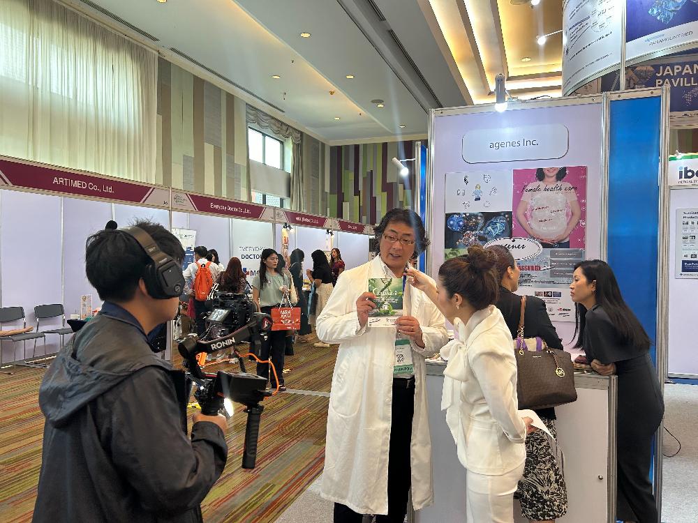 日本-タイ2か国の健康寿命課題についてのサミットイベントで、展示スペースでは日本からは7社が参加。アジェンズブースではアジェンズベトナムのチームと出展を行い、体外診断用医薬品技術"CRADAR-i"と抗加齢・フェムケア製品の紹介を行いました。